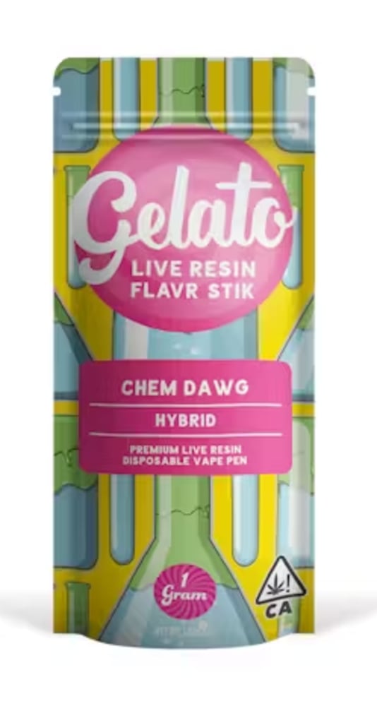 Chem Dawg is an awesome hybrid. This earthy strain will have you uplifted and mellowed out. These artisanal products are designed to advance the evolution of the Cannabis industry into mainstream with a bit of colorful fun. The Gelato Brand and Family have a motto, "Do what is right over what is easy!". Flavors Earthy Woody Diesel