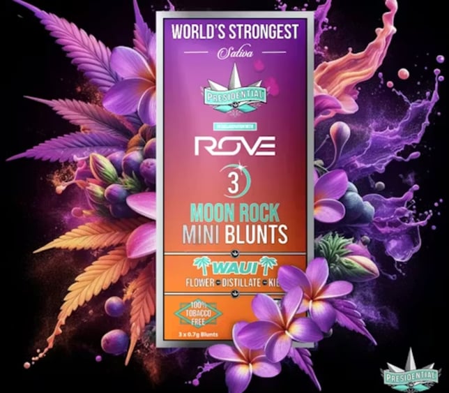 Your Presidential Moon Rock Blunts consist of estate grown, single sourced flower. The flower is then INFUSED with premium distillate formulated by award winning manufacturer Rove, using Presidential’s proprietary infusion process that enables us to permeate the flower to the stem. Finally, it is coated in the highest quality kief, creating the slowest burning, most potent Moon Rocks on the market! Our blunts are ground and rolled in 100% tobacco free wraps for your enjoyment! Waui is a vacation in every puff! Presidential is committed to creating the most innovative, highest quality cannabis products guaranteed to deliver a reliable and consistent dose with each use. *Each Pack of Pee-Wees come with 3 Mini (0.7g) Moon Rock blunts inside Flavors Pineapple Tropical Sweet Effects & flavors are reported by users on our site. This is for informational purposes only and not
